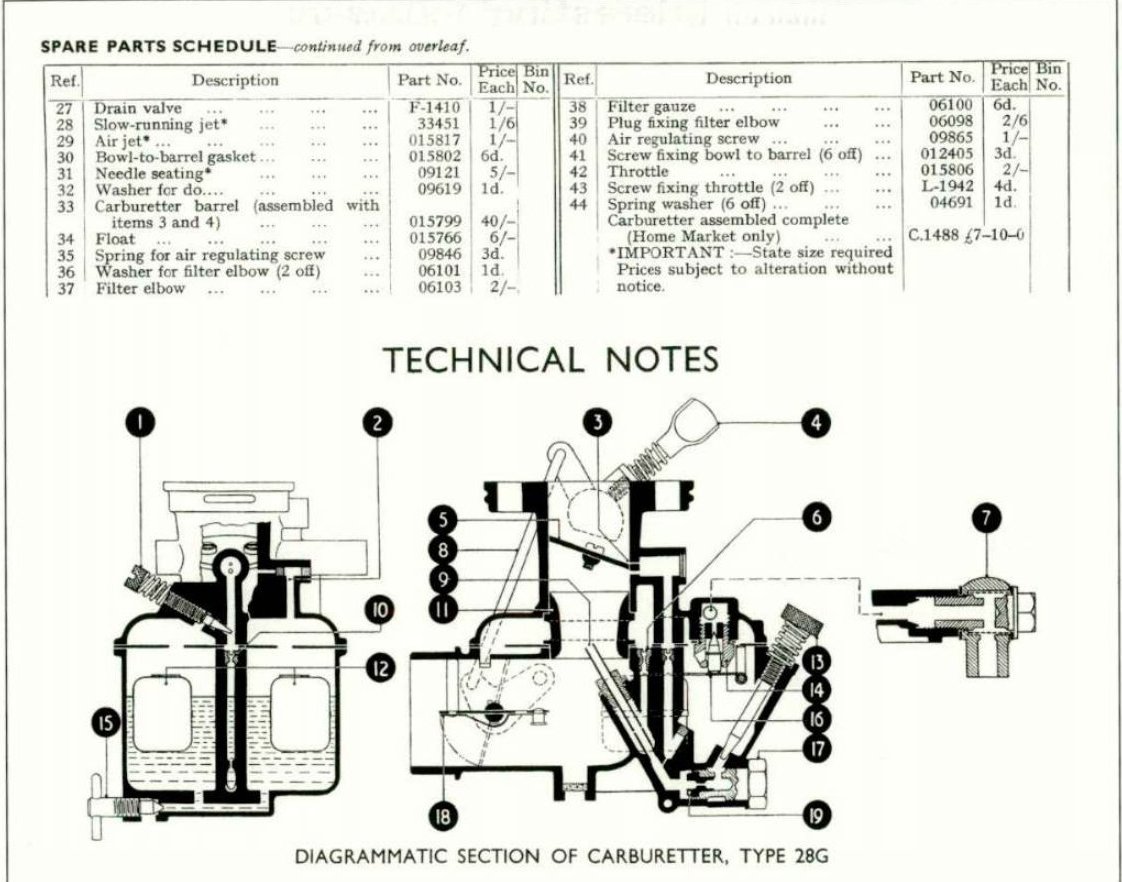 Diagrammatic Section of Carburettor, Type 28G (with adjustable jet)