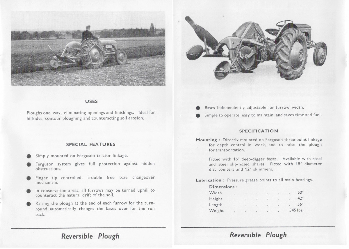 Under the Ferguson name the conventional ploughs were identified thus: (1947-1956)